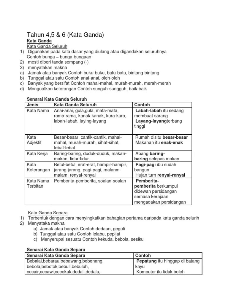 Sesi pdpr membimbing murid memahami kata ganda untuk membina ayat dengan betul. Dengan murid tentang memproses 2. Tahun 4 worksheets for year 4, module 7: Kata ganda separa other contents: Kata ganda separa terbentuk apabila sebahagian daripada kata sahaja yang digandakan. Latihan bahasa melayu, tahun 3 tahun 4 , tahun 5, tahun 6. 4 ibu menyusun pinggan mangkuk di atas . 11.0 rancangan pengajaran harian (rph) 1. 3 manisah amat menggemari pekasam ikan ______ yang dibuat oleh neneknya. Kata ganda separa berimbuhan latihan kata ganda separa berimbuhan. Worksheets for year 4, module 7: Add to my workbooks (0) 3 ibu memotong ______ ikan itu kepada empat bahagian supaya mudah dimakan.